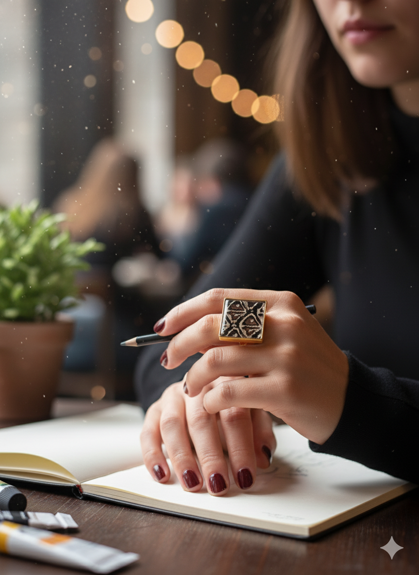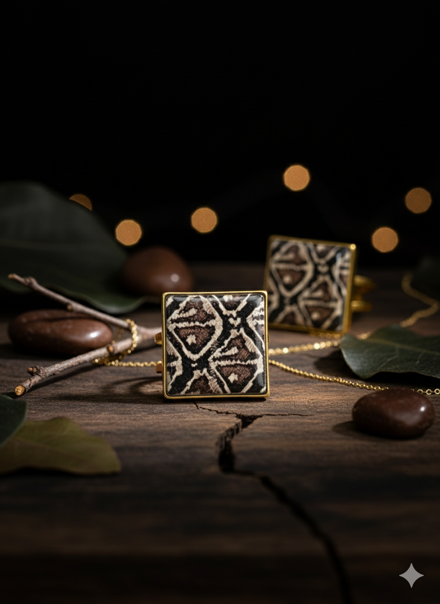 Este anillo ajustable combina la textura auténtica de piel de serpiente con la resistencia y el brillo del acero inoxidable acabado en oro. Fabricado artesanalmente con arcilla polimérica y recina, ofrece un diseño único y duradero que se adapta cómodamente a cualquier medida. Ideal para quienes buscan una pieza sofisticada y versátil que destaca por su calidad y estilo experto.