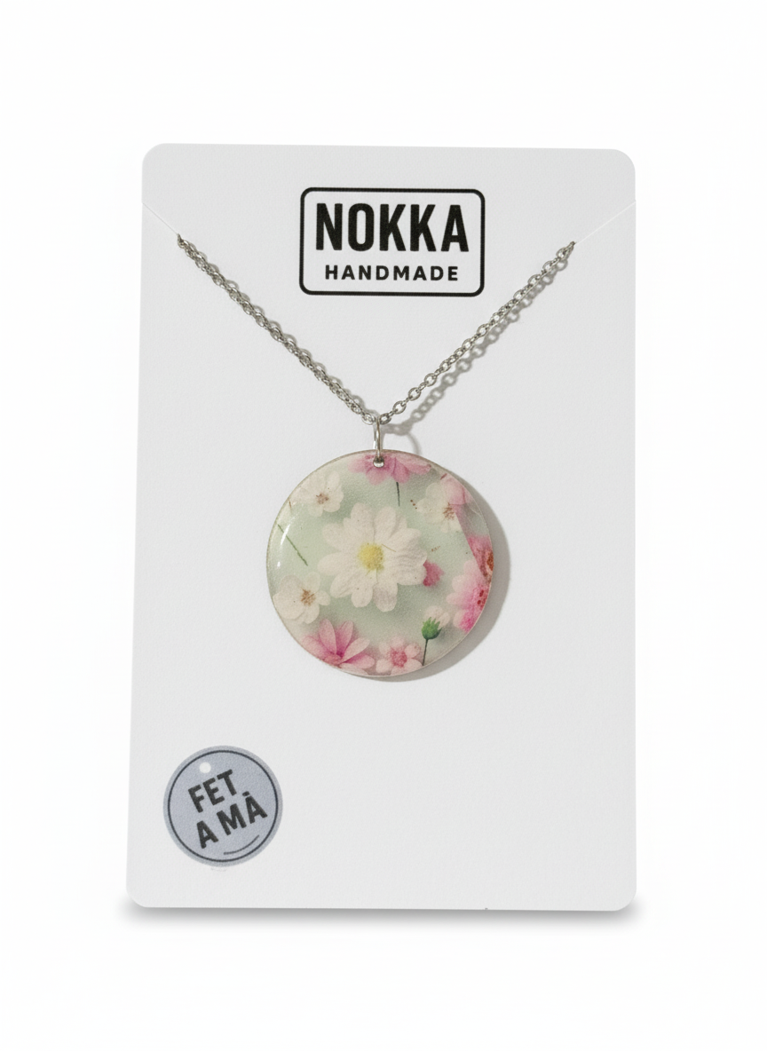Este colgante de la colección Floral destaca por su diseño circular elaborado en arcilla polimérica y recubierto con resina, lo que garantiza durabilidad y resistencia. Su cierre y cadena de acero inoxidable aportan calidad y un ajuste seguro, manteniendo la pieza impecable a lo largo del tiempo. Ideal para quienes buscan un accesorio elegante y duradero con un toque natural.