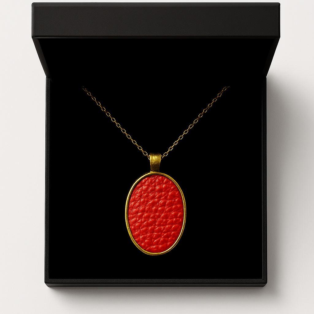 Este colgante ovalado estilo piel destaca por su diseño elegante y sofisticado, ideal para quienes buscan un toque natural y contemporáneo en sus accesorios. Su textura imita con precisión la piel, aportando calidez y carácter a cualquier conjunto. Perfecto para un uso diario o para complementar looks más formales, ofrece versatilidad y distinción con un acabado cuidadosamente elaborado.