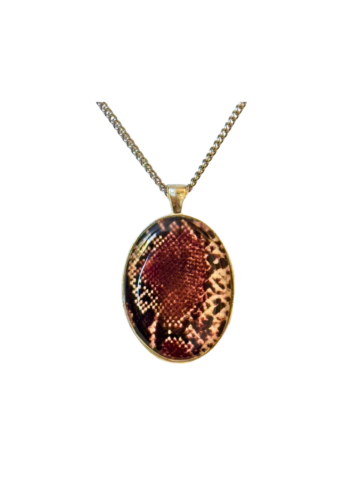 Este colgante ovalado con diseño de serpiente combina elegancia y simbolismo. Su forma ovalada clásica ofrece un acabado refinado, mientras que el detalle de la serpiente añade un toque distintivo que representa renovación y sabiduría. Ideal para quienes buscan una pieza sofisticada que también transmite un mensaje personal profundo. Perfecto para complementar tanto estilos formales como casuales.