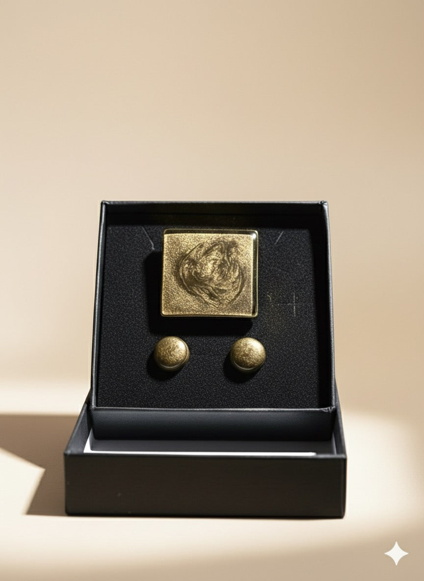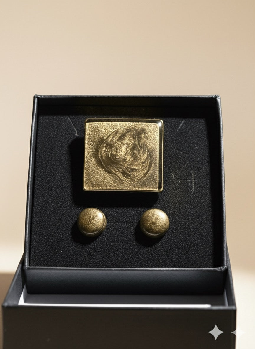 Este conjunto combina un anillo con diseño cuadrado y pendientes a juego en un elegante tono marrón chocolate. Su acabado sobrio y sofisticado aporta un toque distintivo y versátil para complementar tanto looks formales como casuales. Ideal para quienes buscan accesorios con estilo refinado y discreto, ofrece durabilidad y comodidad para el uso diario o en ocasiones especiales.