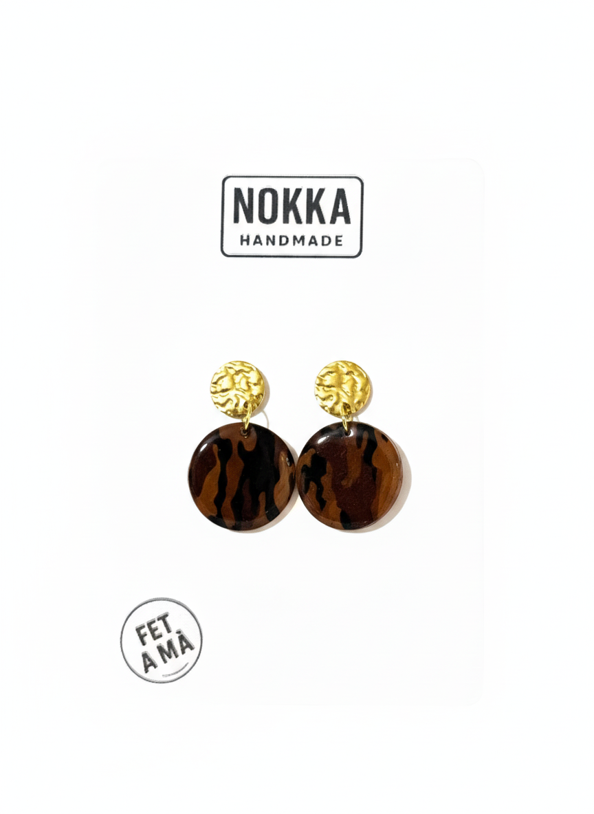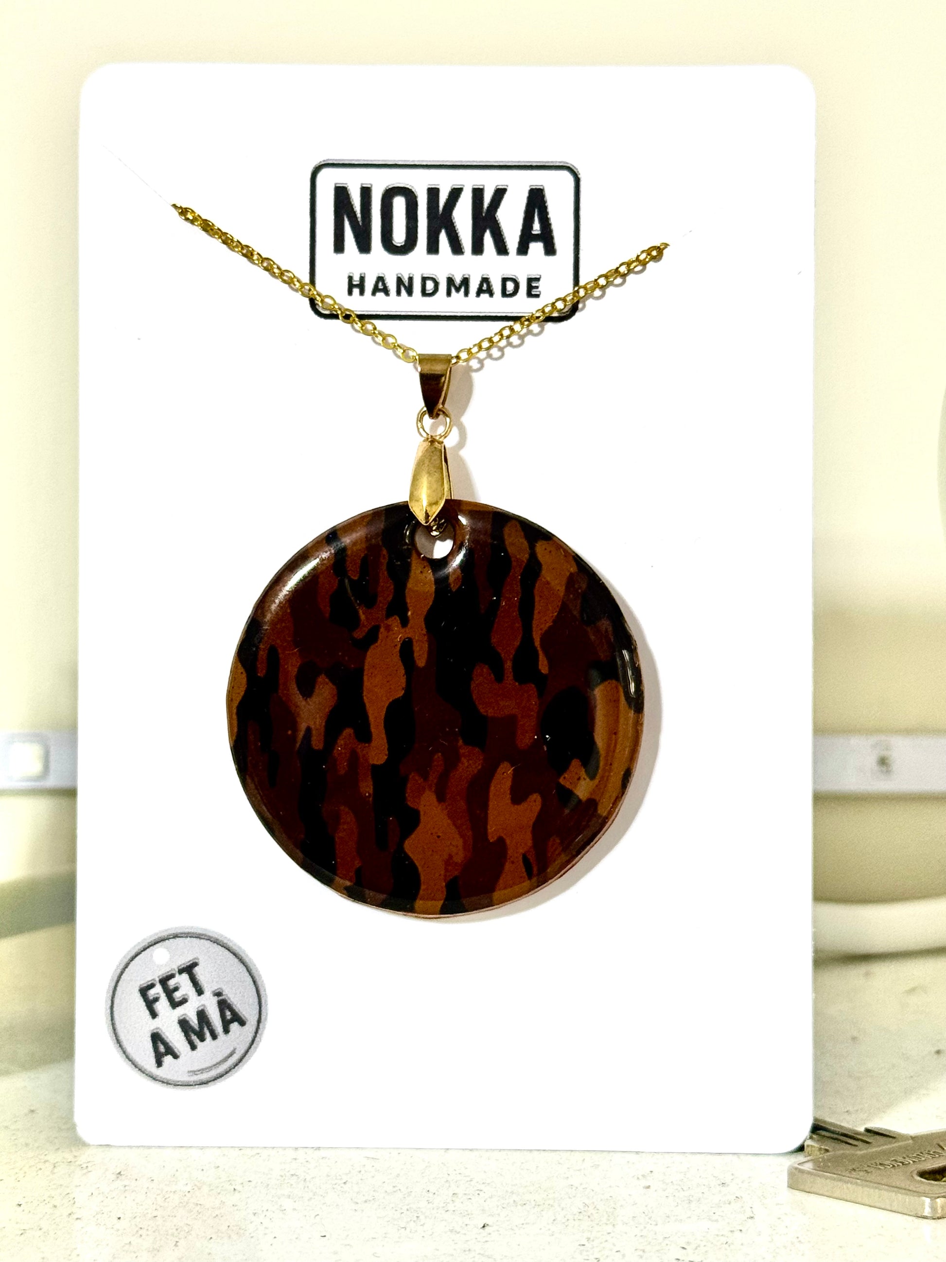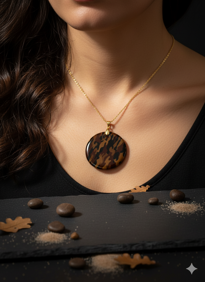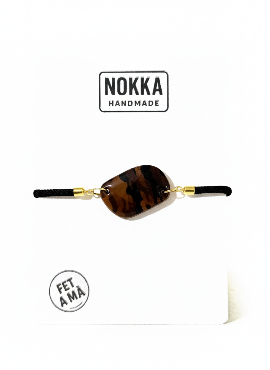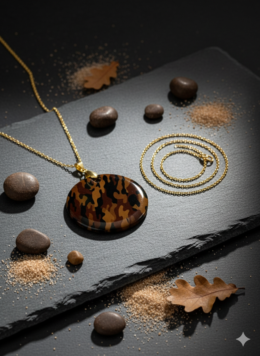 Conjunto artesanal que combina técnicas tradicionales con materiales contemporáneos. Elaborado en arcilla polimérica modelada con estampados que emulan la calidez de la madera natural, reforzado con componentes de acero inoxidable de alta durabilidad. La resina proporciona un acabado protector que garantiza resistencia al uso cotidiano y facilita su mantenimiento. Ideal para quienes buscan piezas con carácter único que fusionan estética rústica con funcionalidad moderna.