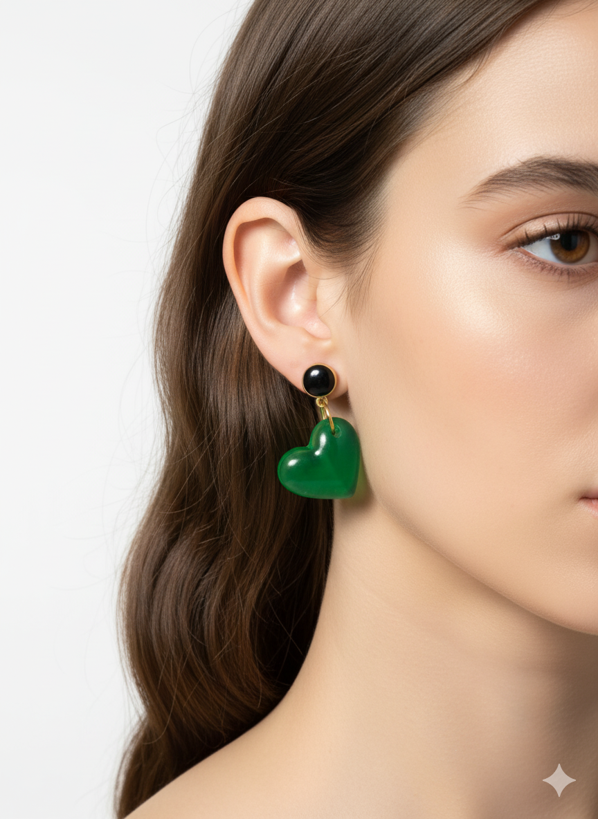 Este pendiente en forma de corazón verde translúcido, elaborado cuidadosamente en resina de alta calidad, combina ligereza y durabilidad. Su diseño vibrante aporta un toque fresco y elegante, perfecto para realzar cualquier estilo. Los cierres de acero inoxidable garantizan un uso seguro y resistente a la corrosión, ideal para quienes buscan comodidad y sofisticación en accesorios diarios.