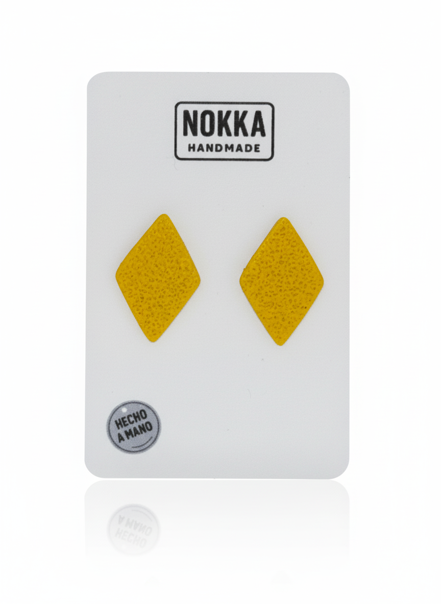 Estos pendientes botón en forma de rombo presentan un vibrante color amarillo y están elaborados con arcilla polimérica de alta calidad, garantizando durabilidad y un acabado artesanal impecable. Los cierres de acero inoxidable aportan resistencia y seguridad, ideales para el uso diario sin comprometer el estilo. Su diseño geométrico y moderno los convierte en un accesorio versátil para complementar distintas ocasiones con un toque de sofisticación.