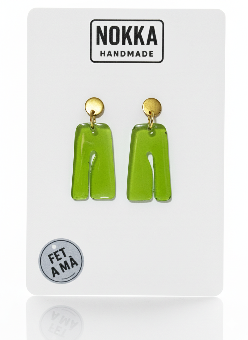 Estos pendientes de forma A combinan la elegancia del acero inoxidable con la frescura de la resina verde traslúcida. Su diseño ligero y moderno aporta un toque sofisticado y versátil, ideal para complementar tanto looks casuales como formales con un color vibrante y una textura única. Gracias a su fabricación en materiales duraderos, ofrecen resistencia al desgaste y al paso del tiempo.