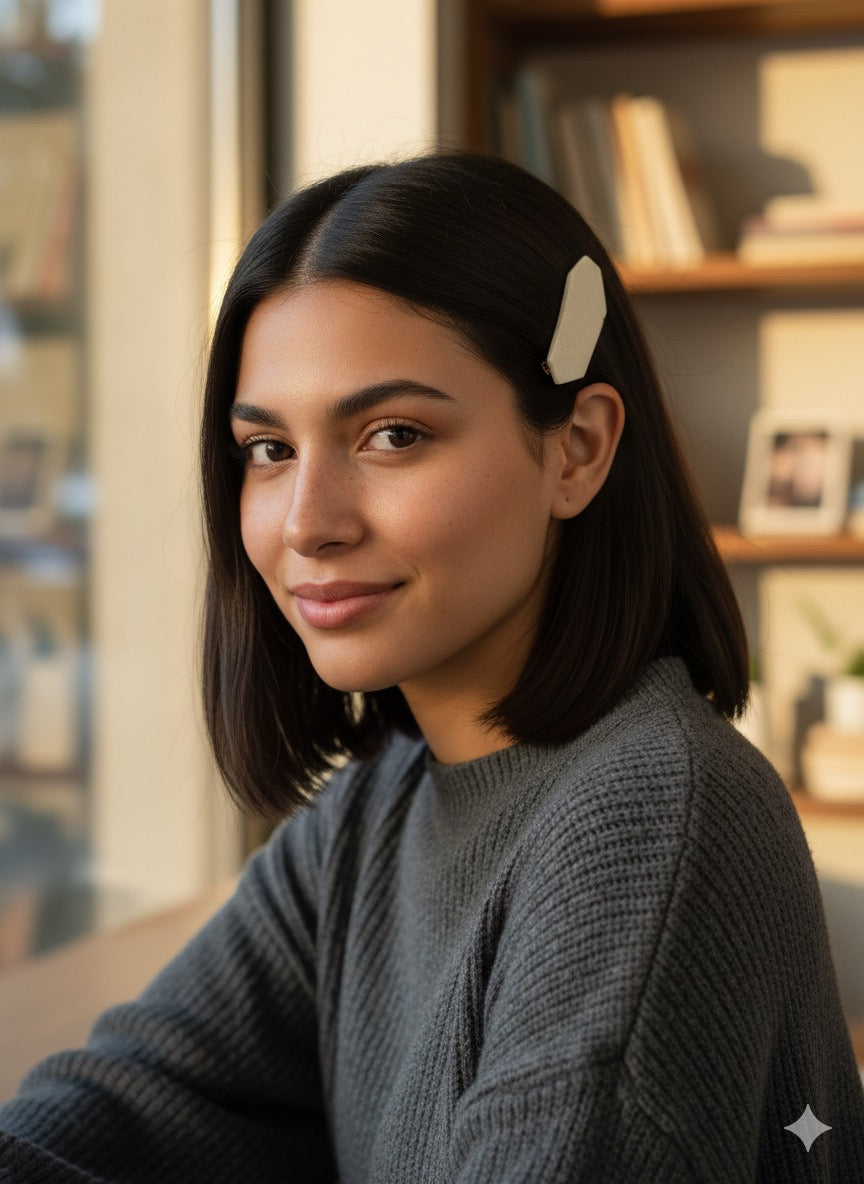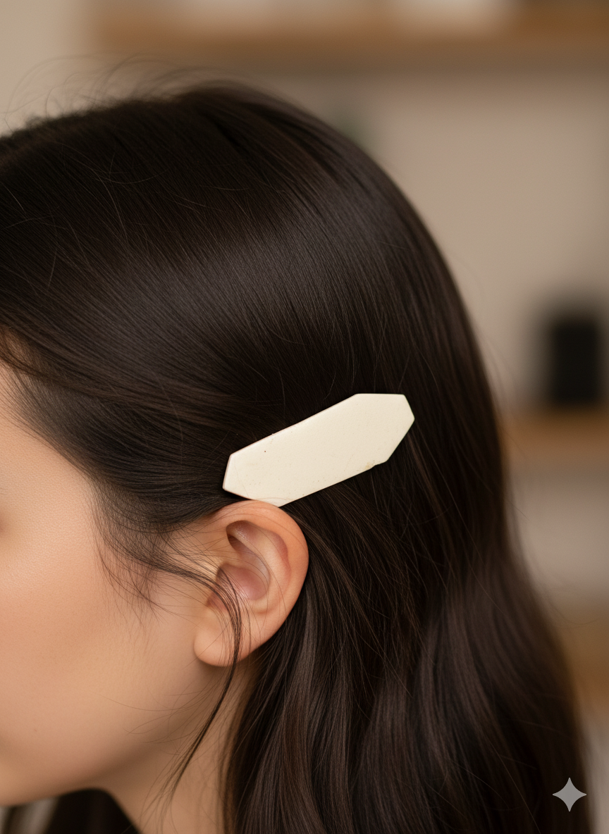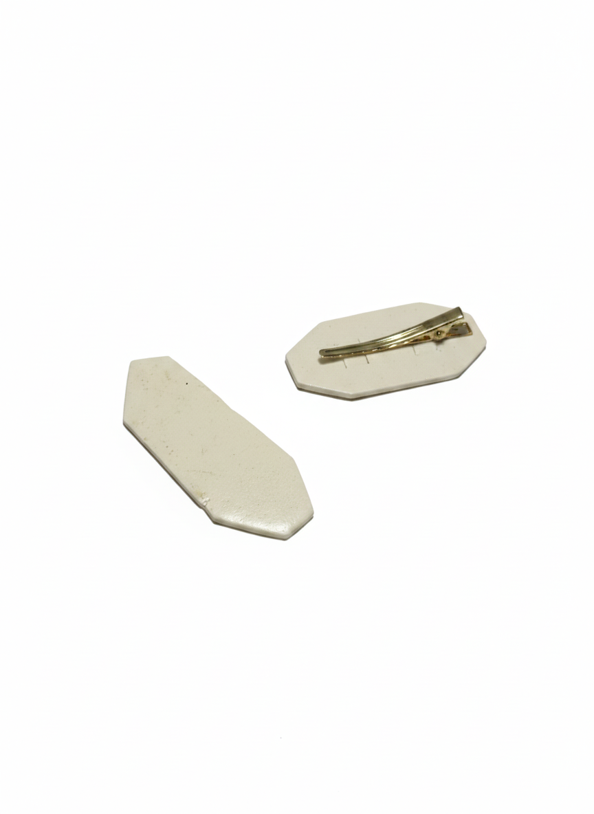 Esta pinza para el cabello en color beige, inspirada en tonos piel, está cuidadosamente elaborada en arcilla polimérica, lo que le confiere un acabado único y resistente. Su cierre metálico garantiza una sujeción firme y segura, ideal para mantener el cabello recogido con estilo y comodidad durante todo el día. Perfecta para quienes buscan un accesorio sofisticado y duradero que combine con cualquier look.