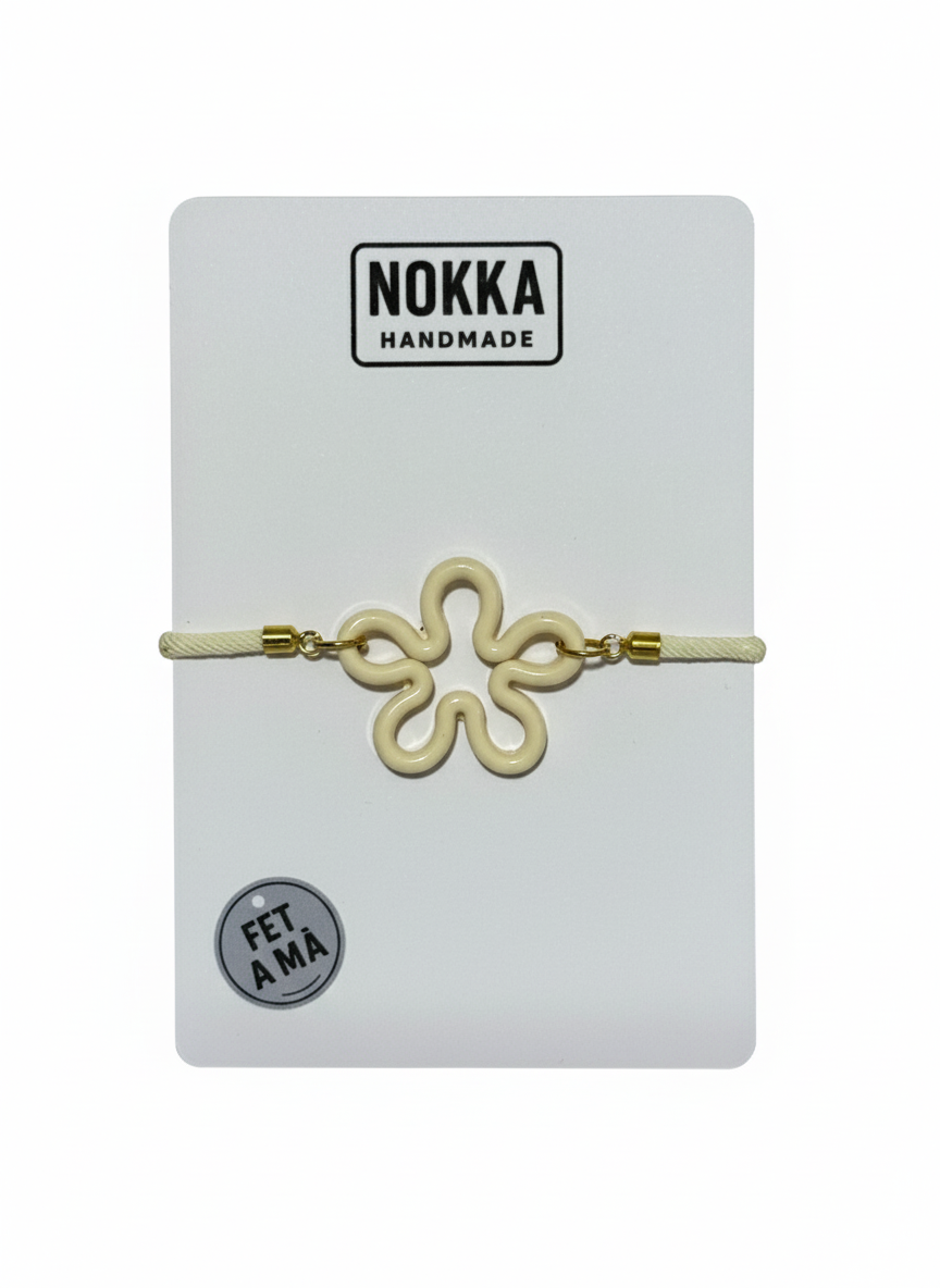 Esta pulsera con flor blanca y cordón combina elegancia y simplicidad en un diseño versátil. La flor, delicada y detallada, aporta un toque natural y sofisticado, mientras que el cordón ajustable asegura un uso cómodo y adaptable a diferentes tamaños de muñeca. Ideal para quienes buscan un accesorio sutil pero con presencia que se adapte tanto a looks casuales como a ocasiones especiales.